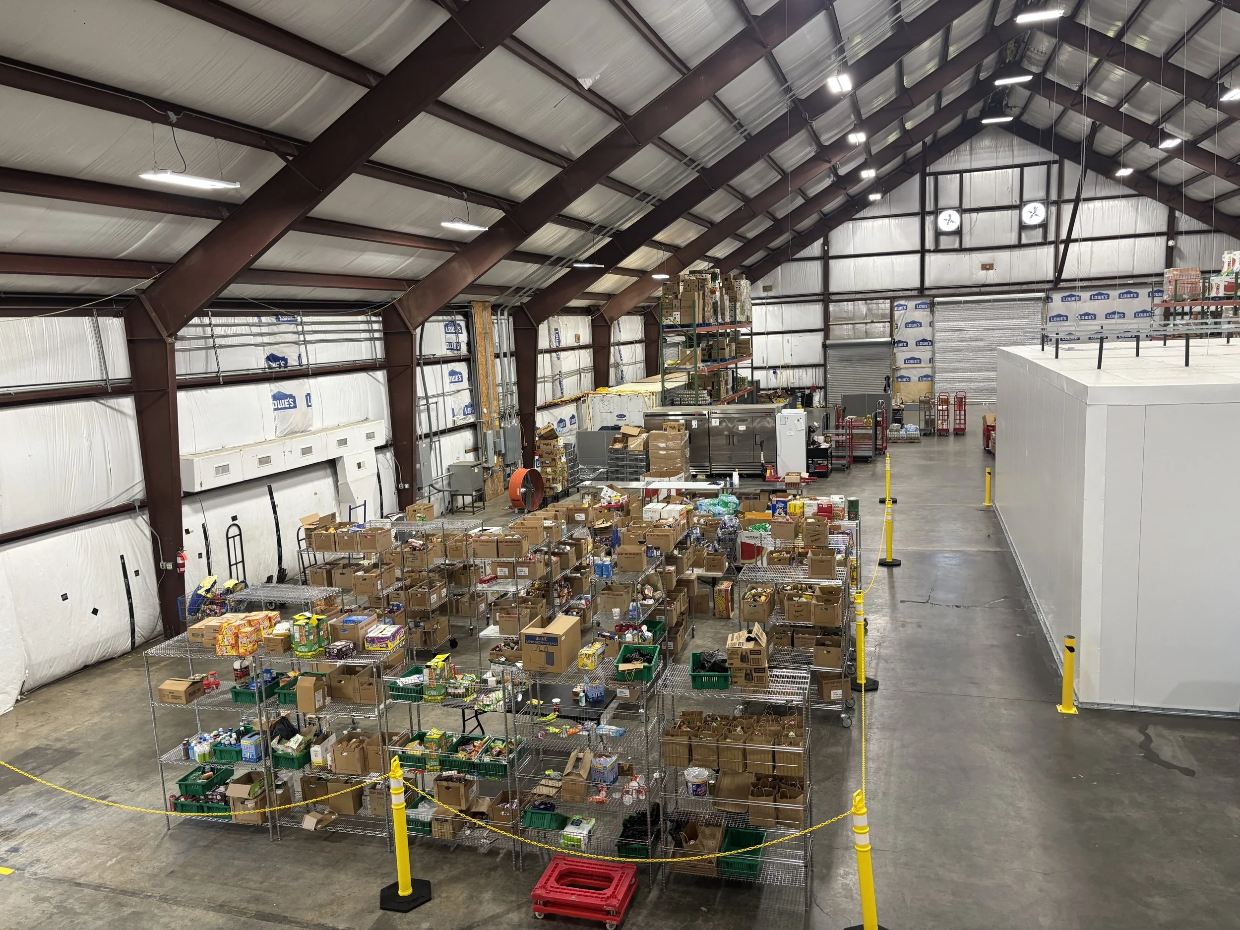 At our new Smoky Mountain Harvest Hub facility, we have completed the installation of the two 1,000 square foot cold storage units, and have also installed two three-story high pallet racks in our warehouse in order to increase our vertical storage capacity (see photo attached). Inside the warehouse, we've also set up our box packing zone, our "market space" of donated foods, an outdoor farmer bin washing area, a new outdoor community educational pavilion, and have begun developing our onsite composting facility! We have also been awarded a Glass Foundation grant, which will enable us to move forward with the construction of our Commercial Kitchen, and a Presbyterian Women's grant, which will help us to outfit the kitchen and to support the development of our Mobile Market program. We would love to invite you to come and visit us and see all the progress we've been able to make!